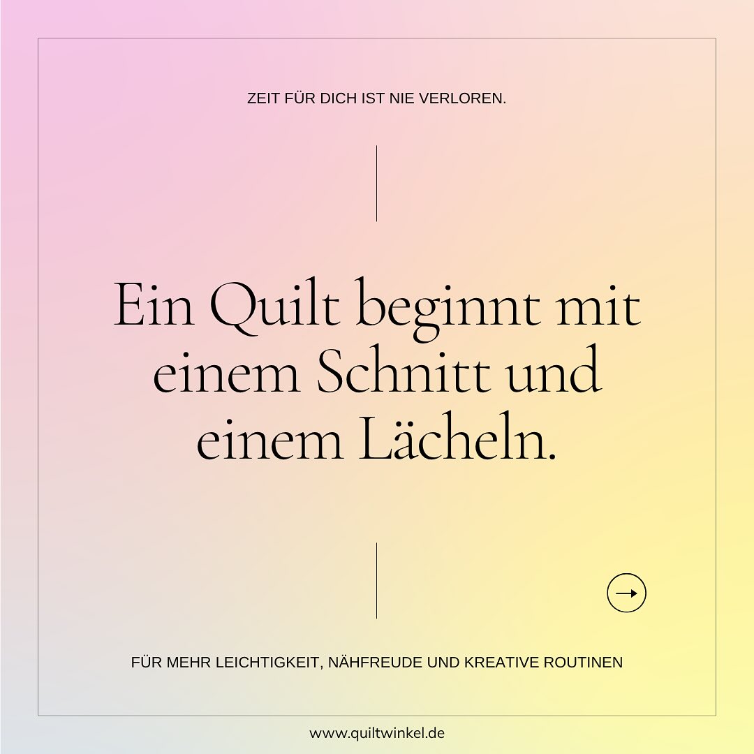 Ich bin wieder da! Mit fertiger Kursleiterausbildung, neuen Quiltideen und ganz viel Lust, dich mitzunehmen! In den nächsten Tagen zeige ich dir, was bei mir los ist: im Atelier, im ersten Kurs vor Ort und auf dem Zuschneidetisch. Wenn du neu hier bist: Herzlich willkommen! Und wenn du schon länger mitliest. Danke, dass du noch da bist. #quiltwinkel #meinquiltwinkel #quiltliebe #NähenMachtGlücklich #patchworkliebeButton