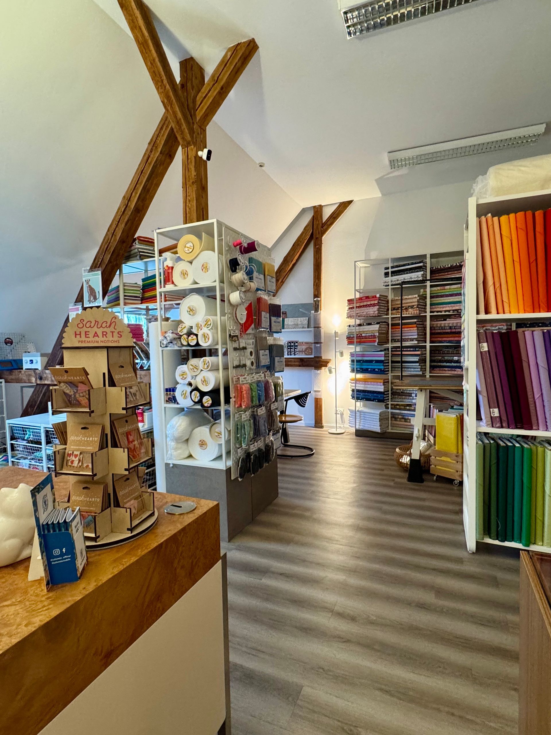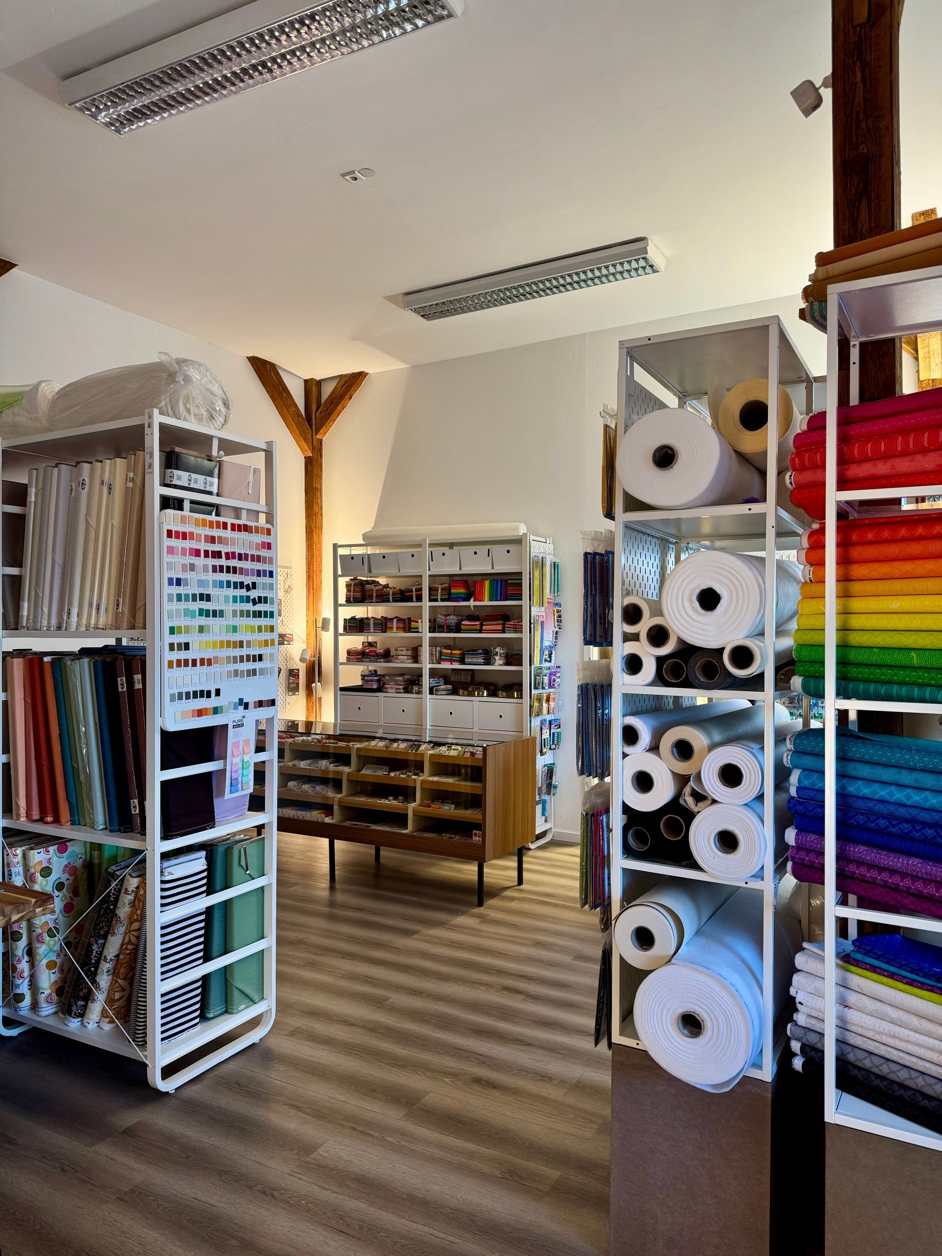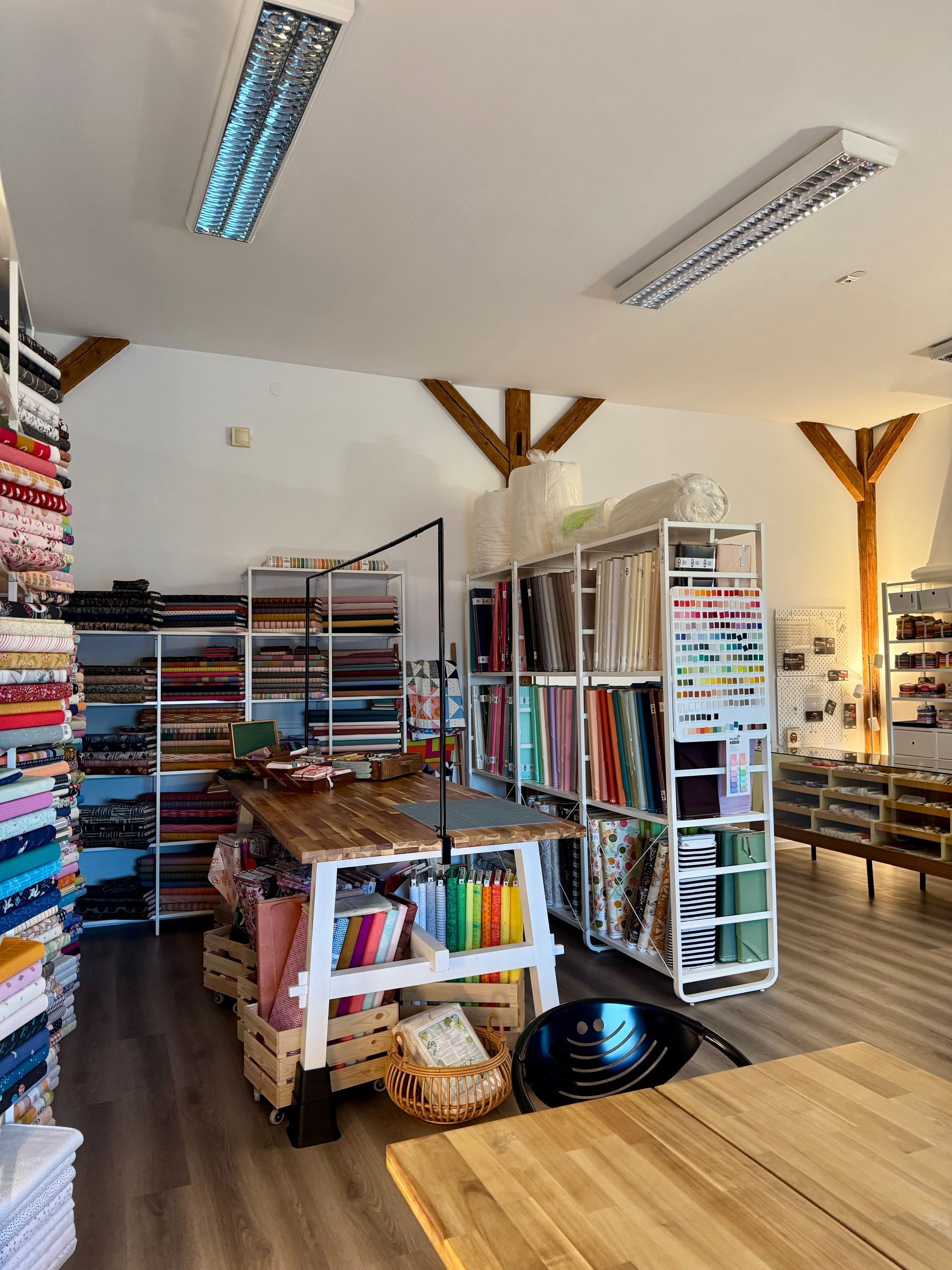 Ich bin in erster Linie Online-Händlerin mit Herz für Stoffe und Quilts, doch mein Atelier ist der Ort, an dem du Stoffe live erleben, Farben fühlen und Inspiration tanken kannst: in ruhiger, persönlicher Atmosphäre.