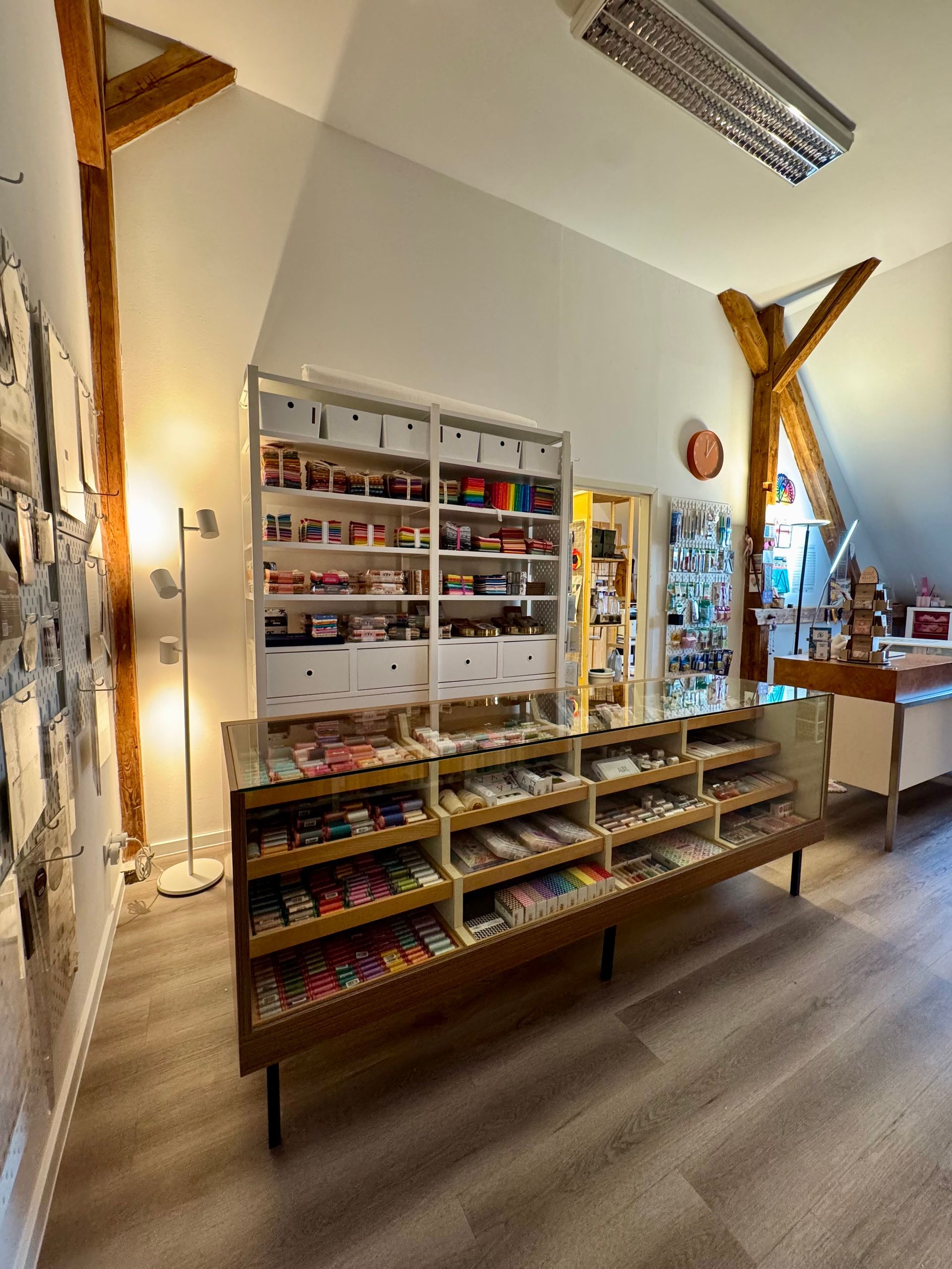 In meinem Atelier findest du handverlesene Stoffe, Garne und liebevoll ausgewähltes Zubehör. Hier darfst du stöbern, fachsimpeln oder dich einfach inspirieren lassen.